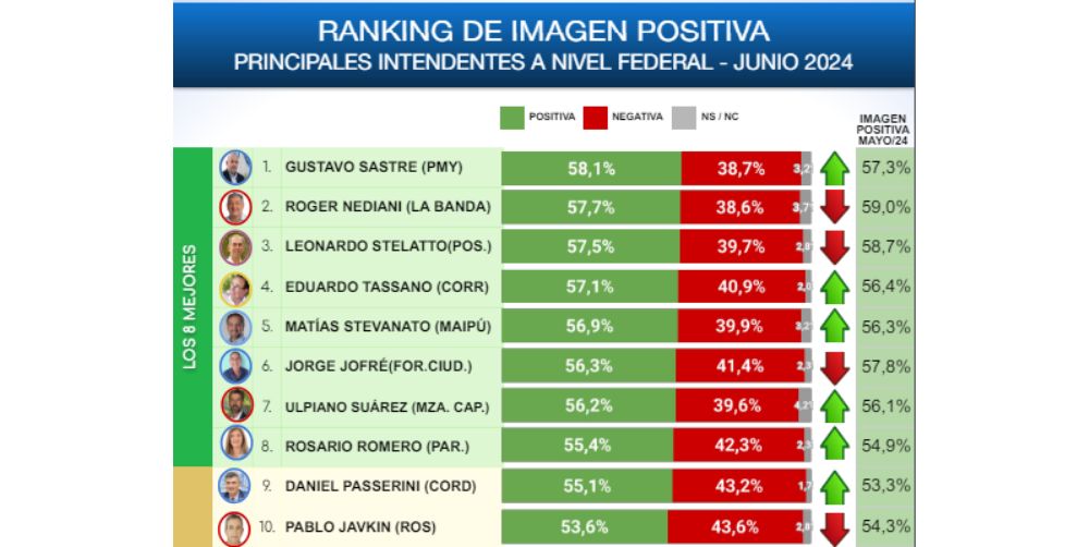 A nivel federal, los intendentes mejor valorados por sus ciudadanos en junio 2024 son: