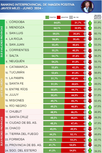 En el reciente informe de junio 2024, se presentan las valoraciones de los gobernadores e intendentes a nivel federal, así como la imagen del presidente Javier Milei en cada provincia. Aquí se desglosan los detalles más relevantes: