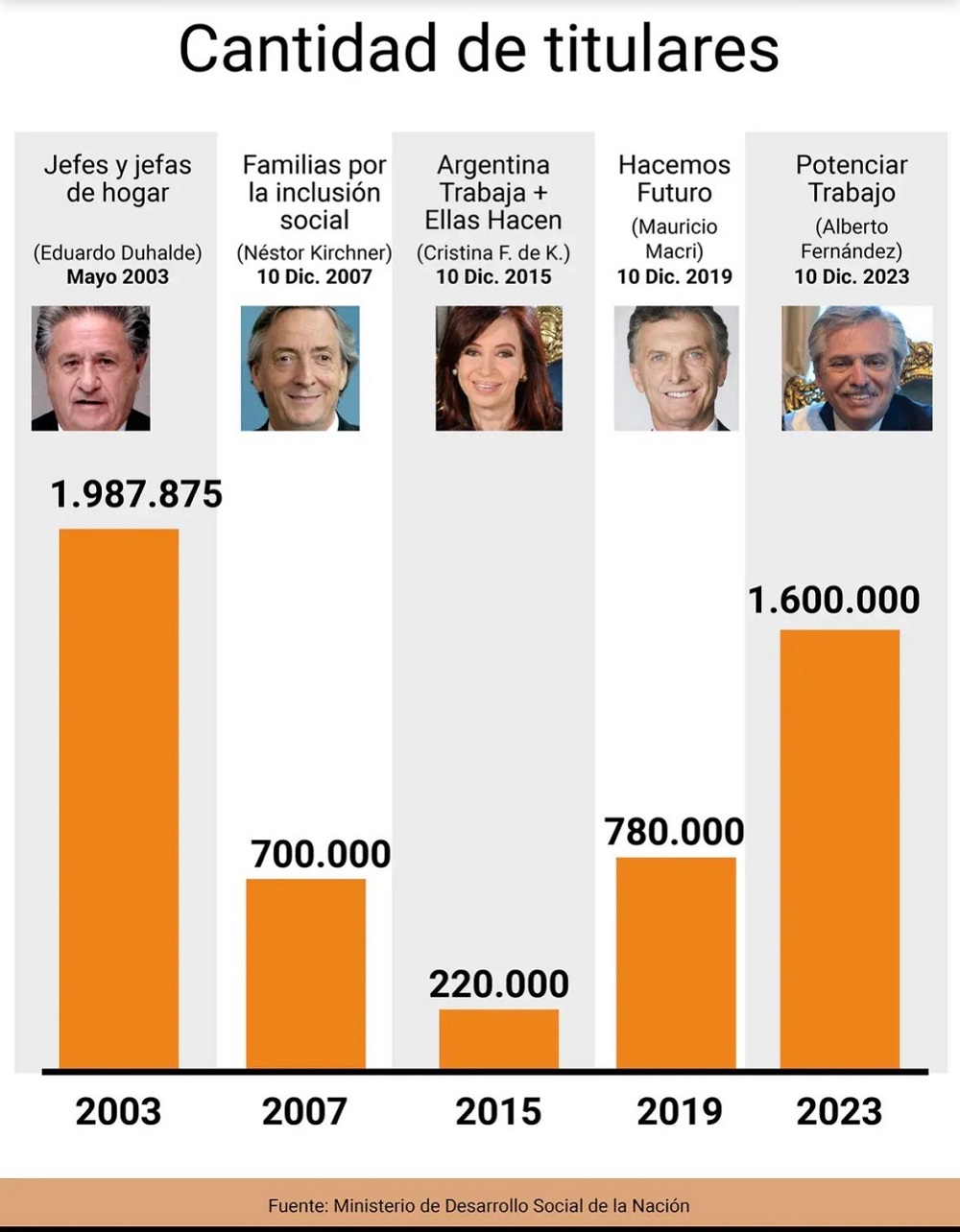 Pero lo que la Nación no dejó de repartir es el dinero de los planes sociales, que se mantienen casi en la misma cantidad que en el Gobierno anterior de Alberto Fernández.