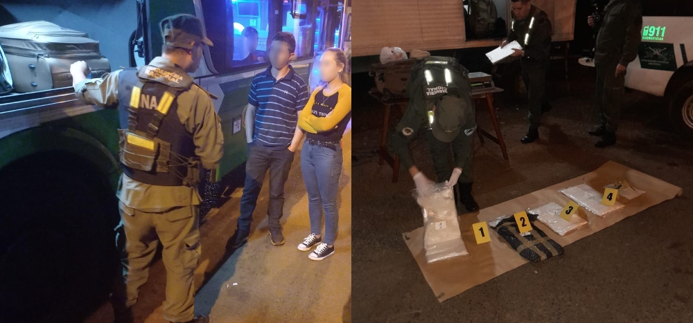 El personal dependiente del Escuadrón 50 “ Posadas” procedió a controlar la bodega de carga de un micro de pasajeros que había salido de Posadas y se dirigía a CABA. Es allí cuando les llamó la atención una valija que contenía varios paquetes plásticos con una sustancia pulverulenta.