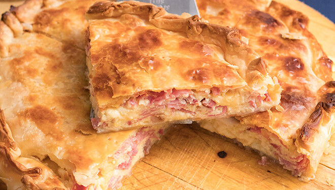 Una de estas opciones es la clásica tarta de jamón y queso, una receta infalible que satisface a todos los paladares y es perfecta para cualquier ocasión.