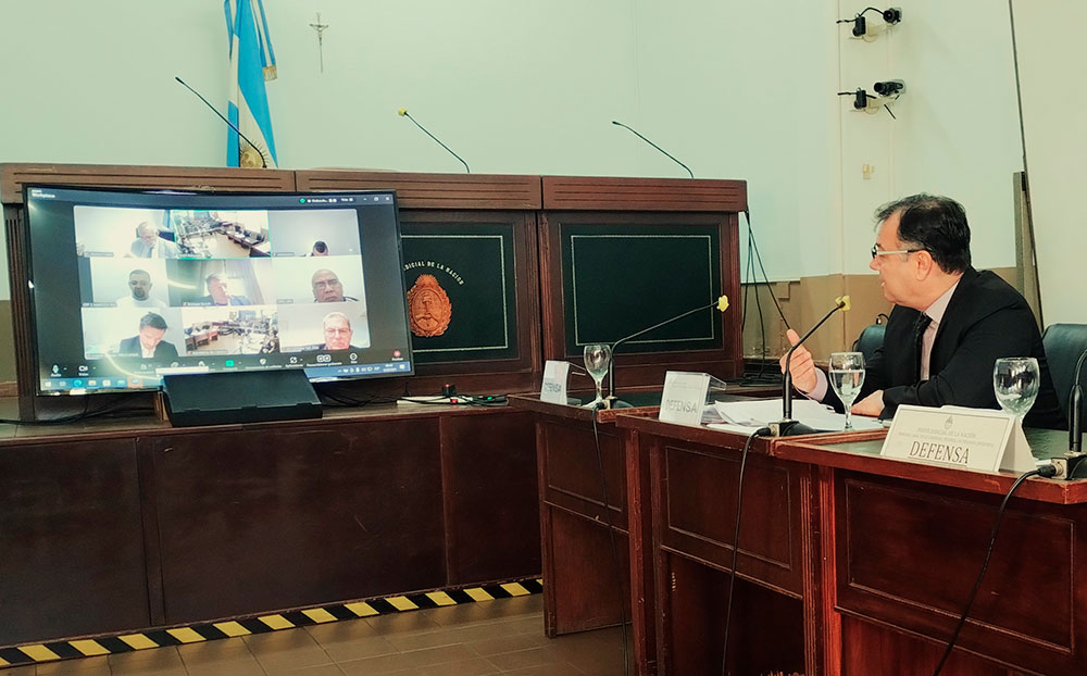 Fue Marco Aurelio Racagni, defensor oficial del Juzgado Federal de Oberá y designado como representante legal de Rojas, quien insistió en que la modalidad virtual que tiene el debate con jueces, acusados y testigos y parte de la fiscalía conectados remotamente desde Chaco, Formosa, Corrientes y Buenos Aires, “no garantiza el derecho a la defensa en juicio” porque se le rechazó al encartado y ahijado legal poder realizar preguntas a los testigos citados a declarar.