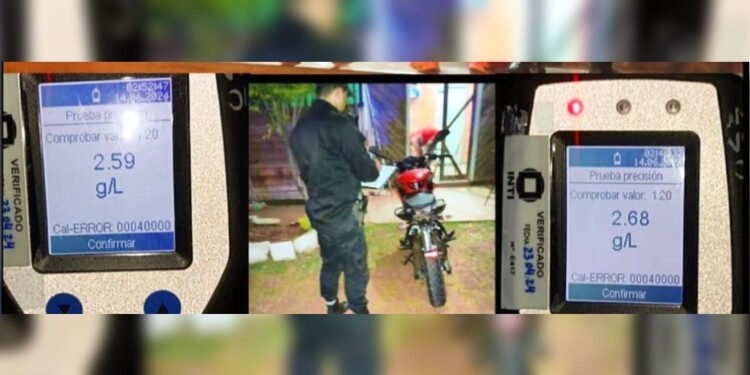 Los resultados de los test arrojaron niveles muy altos, por lo que ambos quedaron detenidos y la moto fue secuestrada.