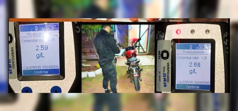Los resultados de los test arrojaron niveles muy altos, por lo que ambos quedaron detenidos y la moto fue secuestrada.