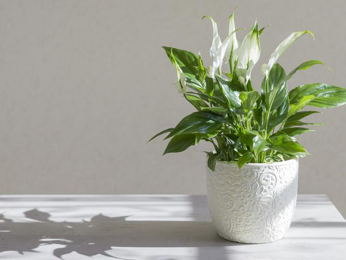 El Espatifilo, también conocido como lirio de la paz, requiere poca luz y sus raíces pueden absorber la humedad, lo que evita la acumulación de bacterias, hongos y moho. Es una planta de fácil mantenimiento y muy eficaz para mantener el aire limpio.