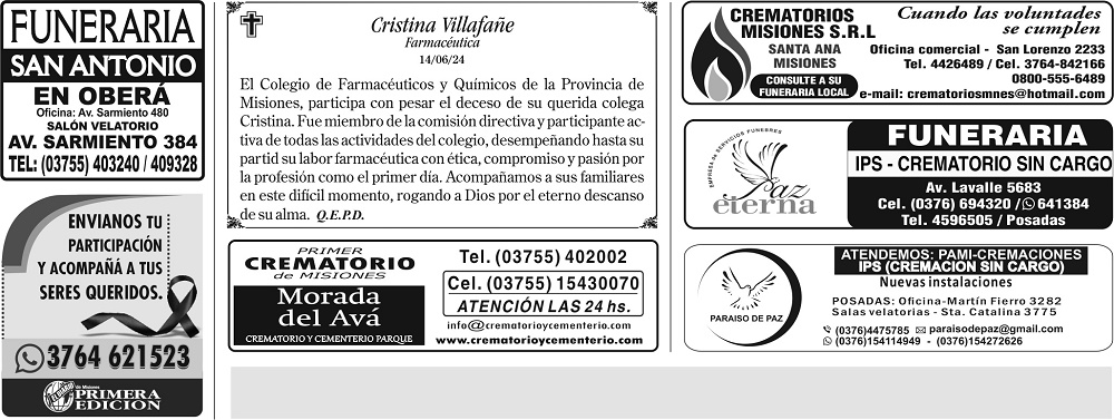 • Fúnebres del Sábado 15 de Junio de 2024
