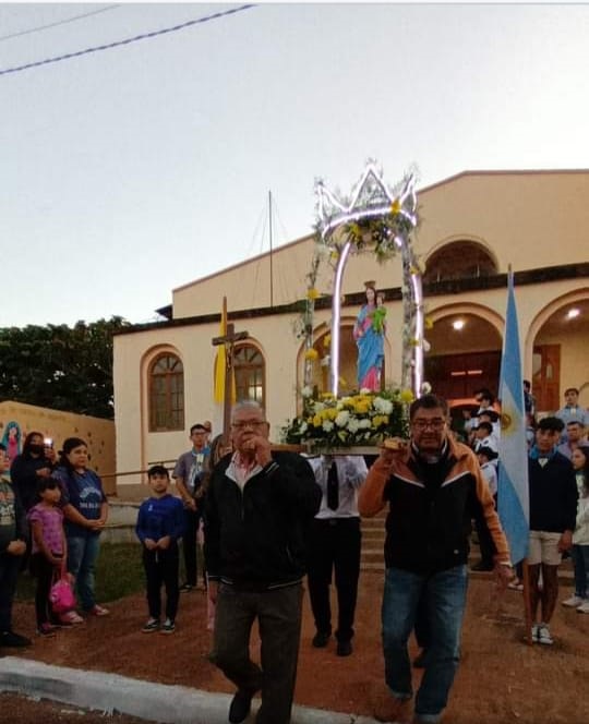 “Mi mamá nos transmitió recurrir al auxilio de María Auxiliadora, siempre nos llevaba a la capilla, ante alguna enfermedad y también pedir a Santa Lucía por mi visón, luego me di cuenta, ya grande, que en la capilla existe una hermosa imagen de esta Santa”. “Cuando trabajaba en el Servicio Penitenciario, me llegó el traslado a la ciudad de Oberá. Pedí a María que quería estar con mi familia, que no se ejecutara esa orden, me arrodillé frente a su imagen con el traslado en la mano, y le dije que, como madre, intervenga. El alcaide me dijo que, lo que se escribe con la mano, no se borra con el codo. Entonces le dije a María: que se arregle nomás, porque yo no le pedí a nadie más para que me ayude. El traslado no se dio, ella lo hizo, pude quedar cerca de mi familia. Provengo de una familia, en las que todos colaboran en la capilla María Auxiliadora, ya sea en las pastorales, liturgias, ministerios, en grupos económicos, en todo lo que sea evangelizar. Serví para el Señor y lo sigo haciendo, acompañado por mi esposa y todas mis hijas”, confió Ángel.