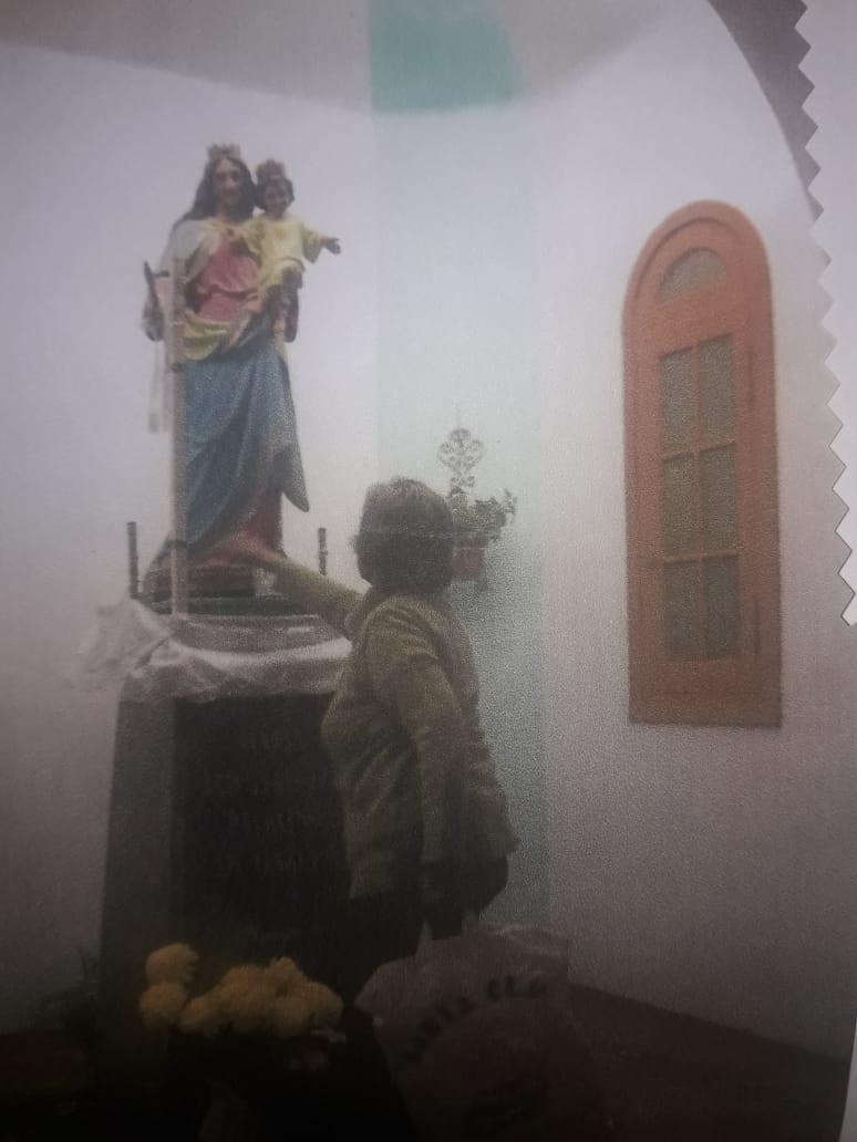 Llegaron a una esquina donde el sacerdote bendijo las palmas y continuaron dos cuadras y “divisé una capilla. La miro y digo: ¡qué hermosa es!, la señora me dice: es nuestra capilla, ¡María Auxiliadora! Y esas palabras quedaron grabadas en mi corazón. Fue así que, siguiendo a Jesús y María, conocí la capilla”. Sin embargo, en esos momentos no visité la capilla porque estaba cerrada y luego, por otros motivos, no volvimos más; pero quiso el destino que, por mis hijos, por sus sacramentos, fui encaminada, nuevamente, como aquel día, hacia la capilla. Estaba abierta, apenas llego a la puerta, veo a Nuestra Madre, radiante, hermosa, y cómo me enamoré de esa imagen; que uno la mira y parece y parece que nos mira, bueno, no es que parece, nos está mirando, te sonríe, te da la bienvenida, ella nos acerca a Jesús”.