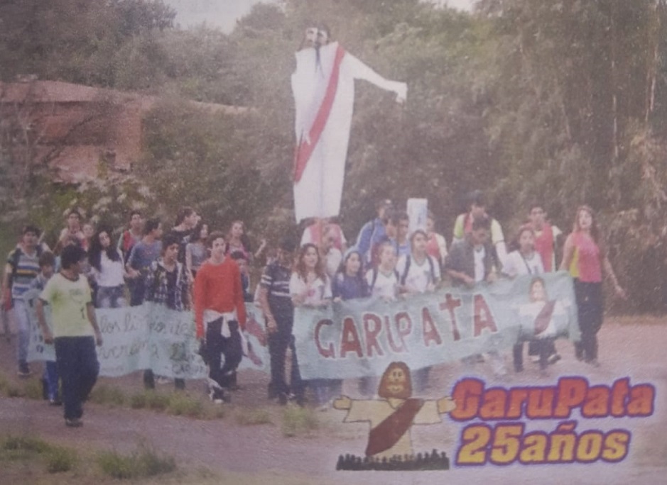 Para Griselda “María es muy poderosa y nos auxilia siempre” y que, si tuviera que contar todas las formas hermosas “en que me auxilió, no me alcanzaría un libro”. Narró cómo conoció la capilla y que fue de una manera muy “especial” cuando recién se había mudado a una casa de los barrios del IProDHa, hace 19 años. Estaba, un Domingo de Ramos, con su esposo y su primer hijo, sentada frente a la casa que está sobre la avenida principal de Garupá, cuando, de pronto, escuchó cantos alegres sobre María y Jesús, voces de jóvenes, y “me pregunté: ¿estoy loca? Salí a ver y visualicé en lo alto, que sobresalían unas grandes Marionetas que se movían, que bailaban al compás de los cantos. Eran las figuras de María y de Jesús. Le digo a mi hijito: ¡Mirá, son Jesús y María…vamos! No lo dudé, fue un impulso, nos pusimos las zapatillas, y nos sumamos al grupo de gente que caminaba y que llevaba palmas en sus manos y yo no tenía, pero me dije, ya alguien me va a dar y fue así que, una señora me da dos palmas al verme sin nada”. Después supo que se trataba de la tradicional peregrinación “Garupata”. “Habían dibujado en el asfalto, unos pies enormes, unas huellas, como que marcaban el recorrido, y me parecía hermoso todo eso”, acotó.
