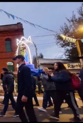 Isabel contó lo que le sucedió “a una persona que ama a la virgen, que le demuestra su afecto a través del servicio en el Ministerio de Música, que aporta su don como animador en las celebraciones que lo requieran. El 24 de mayo quería participar de la procesión, pero su esposa se demoraba. Quería ver cuando la imagen salía de la capilla y bajaba las escalinatas, que era lo que anhelaba. Como tardaron, pensó que se perdería de ese momento. Llegó a la capilla y entre el cúmulo de gente, se dio cuenta que la imagen todavía, no había salido. El diácono pasó a su lado, lo toma del brazo y le dijo: quiero que lleves a María. La emoción más grande fue la que le embargó ese día cuando solo quería verla, pero María Auxiliadora quiso que la llevara. Así como a este muchacho, María lo llamó, lo mismo hizo con mi padre, que era un hombre duro, sin religiosidad y, de un día para el otro, comenzó a ir a la misa a la capilla. Era quien nos invitaba a las hijas a asistir a las celebraciones. Después que falleció, recién nos acercamos a María Auxiliadora. Seguramente papá intercedió para que eso sucediera. Así, ella fue obrando en mí, y me regaló el honor de portar a su hijo, me lo encomendó, a través del Ministerio de la Eucaristía”.
