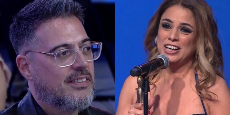 Marina calabro dedicando su premio a barbano, mientras vemos los gestos que tiene él para con ella.