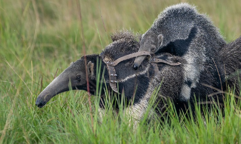 Días atrás se registró a la primera cría del quinto núcleo poblacional de oso hormiguero gigante en Yerbalito, al norte del Gran Parque Iberá, en la vecina provincia de Corrientes
