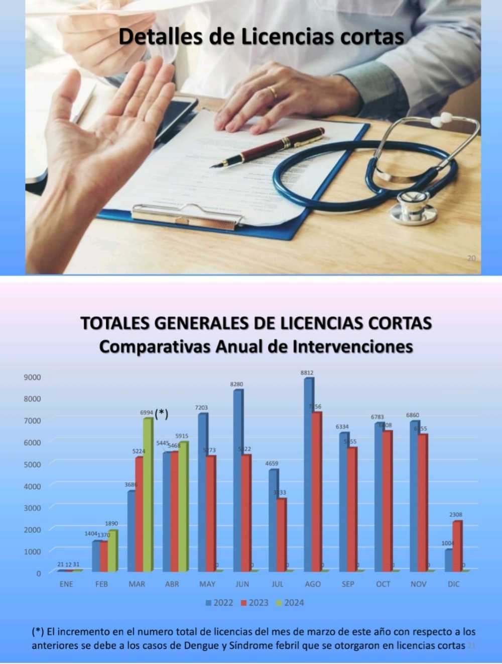 En ese sentido según las estadísticas en marzo del año pasado se otorgaron 5.224 licencias, número que este año trepó a 6.994, todas estas licencias cortas (de 7 a 10 días) fueron por casos de dengue y síndrome febril.