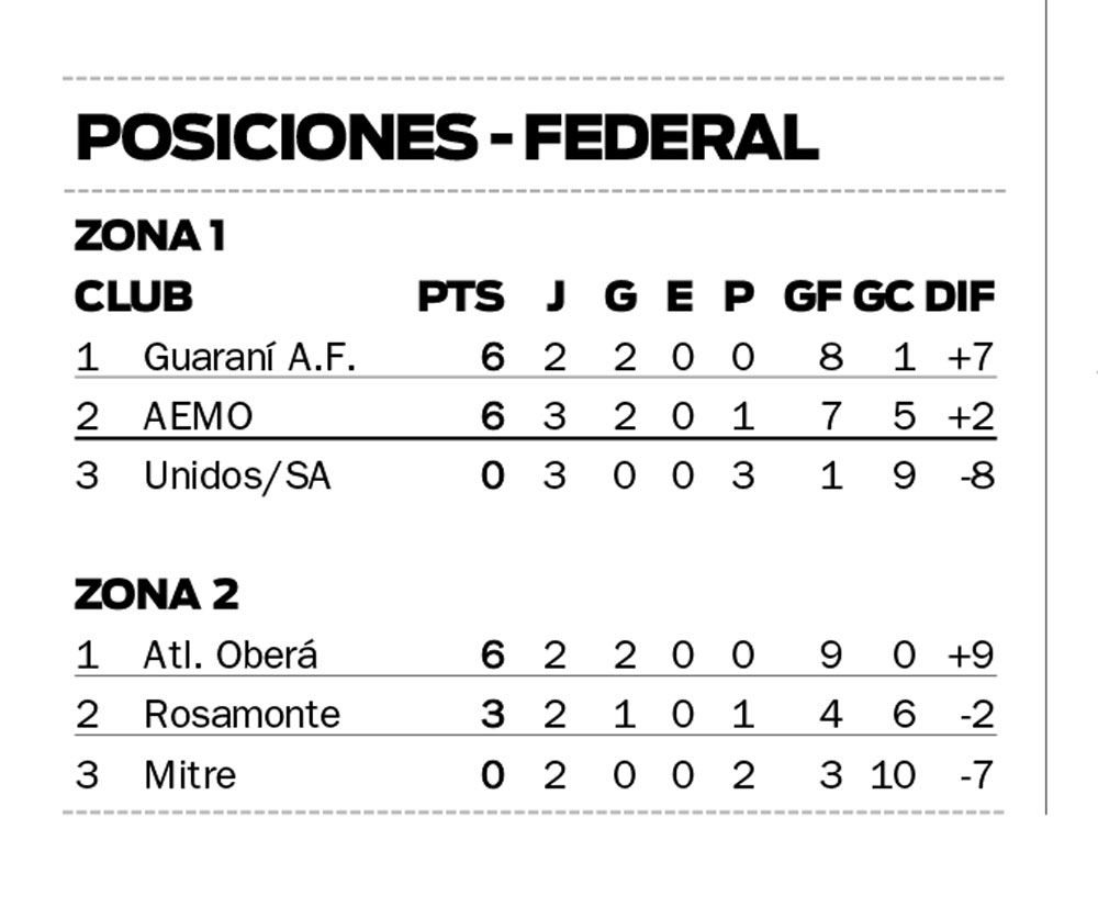 La fecha se inició el pasado sábado con la victoria 1-0 de AEMO sobre Unidos San Antonio de Azara, por la Zona 1.