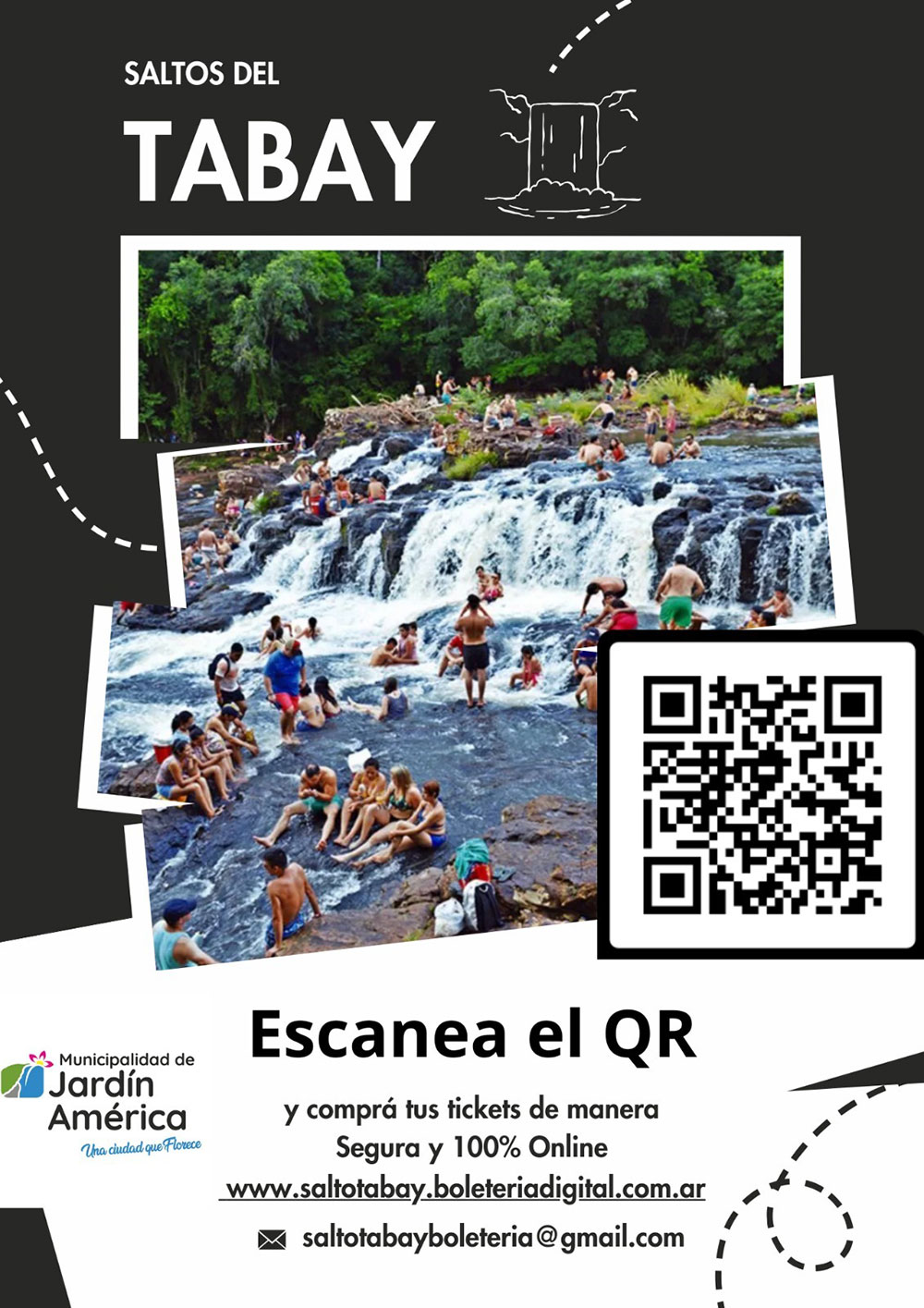 El sistema de boletería virtual es sencillo y fácil de usar. Los visitantes solo necesitan ingresar a boletería Saltos del Tabay, en saltotabay.boleteriadigital.com.ar buscar el evento o promoción deseada, seleccionar la cantidad de tickets y completar la compra con tarjetas de todos los bancos.