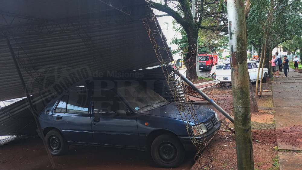 Otro automóvil que también estaba resguardado bajo el techo, fue “rescatado” por los vecinos y personal de la Policía de Misiones y Bomberos Zona Sur, quienes trabajaron en el lugar.