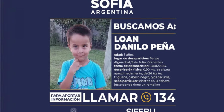 Tras ocho días de intensas búsquedas, el paradero de Loan Danilo Peña, de tan solo cinco años, continúa siendo un misterio. En una jornada marcada por versiones de que fue visto en Ciudad del Este y otra que lo ubicaba en Resistencia (Chaco), esta mañana la causa cambió de carátula, pasó a ser “trata de personas”, y el caso quedará a cargo de la Procuraduría de Trata y Explotación de Personas (PROTEX). La búsqueda se agota y como dijera días atrás a FM de las Misiones Ana Llobet, presidente de Missing Children Argentina “el tiempo que sigue pasando y las horas juegan en contra”.