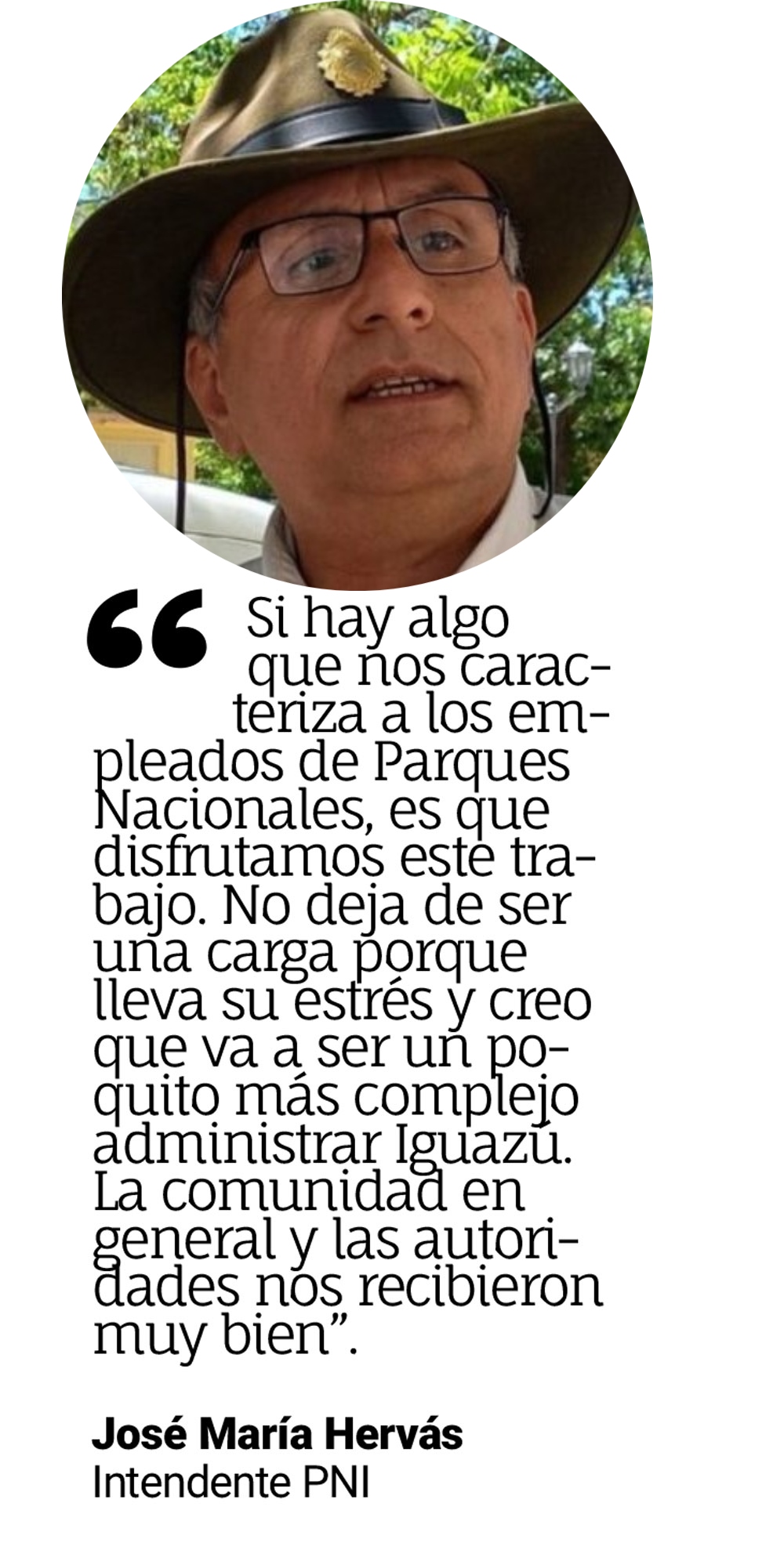Hervás comentó que lleva más de treinta años en la actividad, “soy oriundo de Tucumán y estuve trabajando en muchos parques nacionales. Varios de mis compañeros ya tuvieron como destino el Parque Nacional Iguazú como intendente o jefes de guardaparques. Vine varias veces a Iguazú a cursos de capacitación y de paseo. Además he trabajado ocho años en el Parque Nacional Mburucuyá, en Corrientes, desde donde hicimos el Parque Nacional Iberá en el año 2011”.