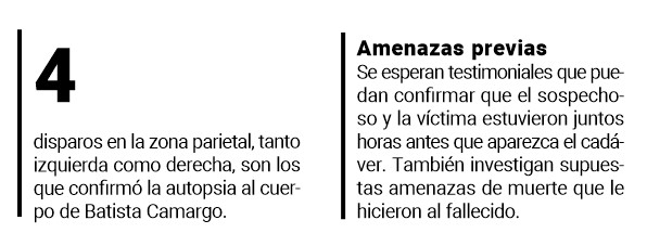 Según la autopsia, a Batista Camargo lo ejecutaron de cuatro balazos en la cabeza con un arma de fuego presumiblemente calibre 380 milímetros o 368.