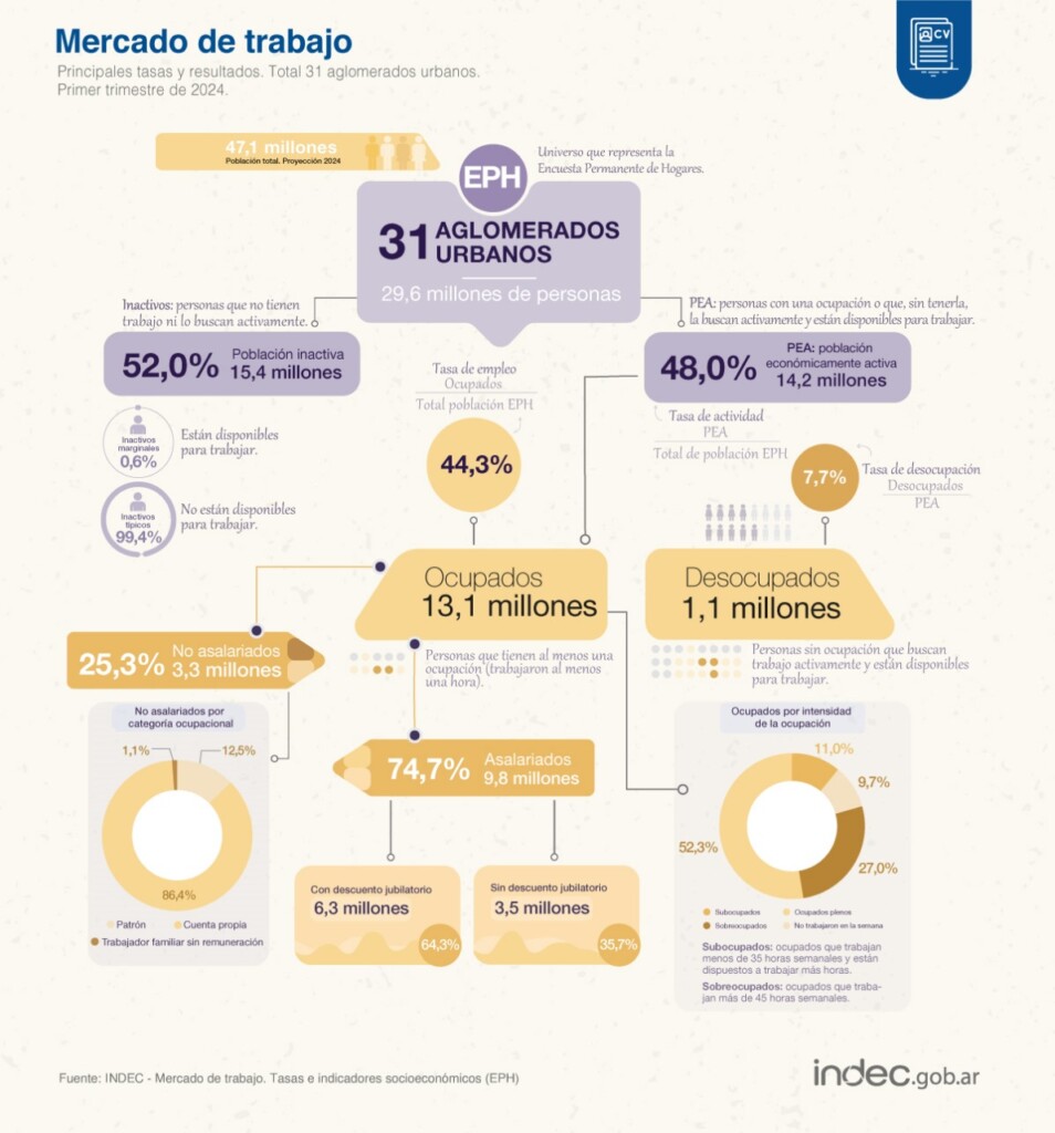 “El INDEC difundió las primeras cifras oficiales del gobierno de Milei este año relativas al mercado de trabajo. Básicamente son tres indicadores de lo más importante: la tasa de actividad laboral, de empleo y de desocupación”, explicó Pegoraro. Señaló que estos datos se refieren a los aglomerados urbanos y no a los totales provinciales. En el caso de Misiones, corresponden a Posadas, y en el Chaco, a Gran Resistencia, entre otros.