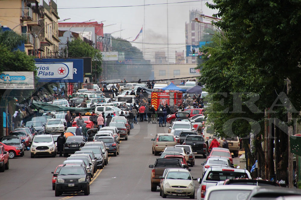 Patrulleros policiales y la herramienta de los bomberos de la fuerza de seguridad provincial fueron utilizados para cortar la avenida y manifestar que la medida o reclamo se iba a mantener con los transportes estacionados como alegóricos de la lucha.