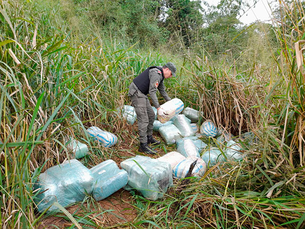 Inmediatamente se acercaron al lugar de donde provenía el sonido, y tras rastrillar la zona con apoyo del personal de la Unidad de Investigaciones de Delitos Complejos y Procedimientos Judiciales “Eldorado”, hallaron 33 bultos escondidos entre la vegetación del monte. No tardaron en percatarse que eran similares a los que se utilizan para transporte de estupefacientes.