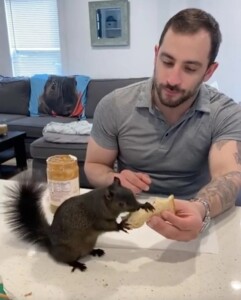 “Lo solté en el patio trasero y, un día y medio después, lo encontré sentado en mi porche, sin la mitad de su cola. Así que aquí estoy, con los ojos abiertos, como si lo hubiera fallado como ser humano”, le dijo a USA Today. “Abrí la puerta, él entró corriendo y ese fue el último de la carrera de vida silvestre de Peanut”. Eso ocurrió hace cinco años y desde entonces los dos han sido inseparables.