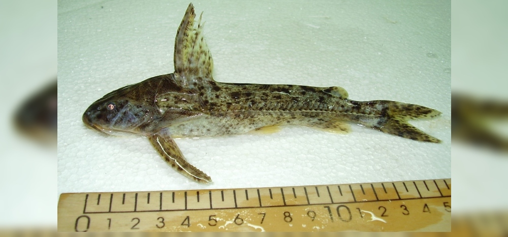 La boca es chica y quijada superior es más larga que la inferior, posee labios gruesos y barbillas cortas y simples. Los ojos son pequeños en relación al tamaño de la cabeza y se encuentran en posición dorsal. La aleta dorsal tiene 7 radios, la espina es fuerte, con dentículos en el margen anterior y posterior. La espina pectoral también es fuerte y está aserrada en ambos márgenes.