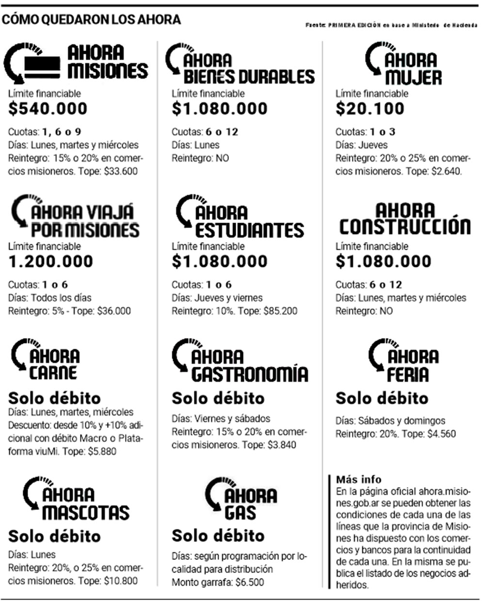 Además, se incrementó el número de cuotas sin interés en el Ahora Misiones (se podrá hacer compras hasta en 9 cuotas) y en el Ahora Construcción (se podrá comprar hasta en 12 cuotas).