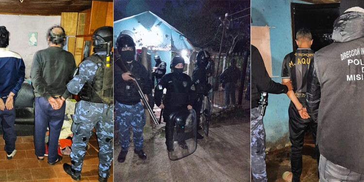 Conforme a los testimonios de los damnificados, agentes de la Dirección Investigaciones Complejas trabajaron con los datos obtenidos y, a través de los mismos, cerca de las 6 horas de la mañana irrumpieron simultáneamente en dos domicilios de la chacra 181 con la orden del Juzgado de Instrucción No. 1 de Posadas y con el apoyo de la Dirección Guardia Infantería.