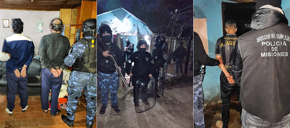 Conforme a los testimonios de los damnificados, agentes de la Dirección Investigaciones Complejas trabajaron con los datos obtenidos y, a través de los mismos, cerca de las 6 horas de la mañana irrumpieron simultáneamente en dos domicilios de la chacra 181 con la orden del Juzgado de Instrucción No. 1 de Posadas y con el apoyo de la Dirección Guardia Infantería.