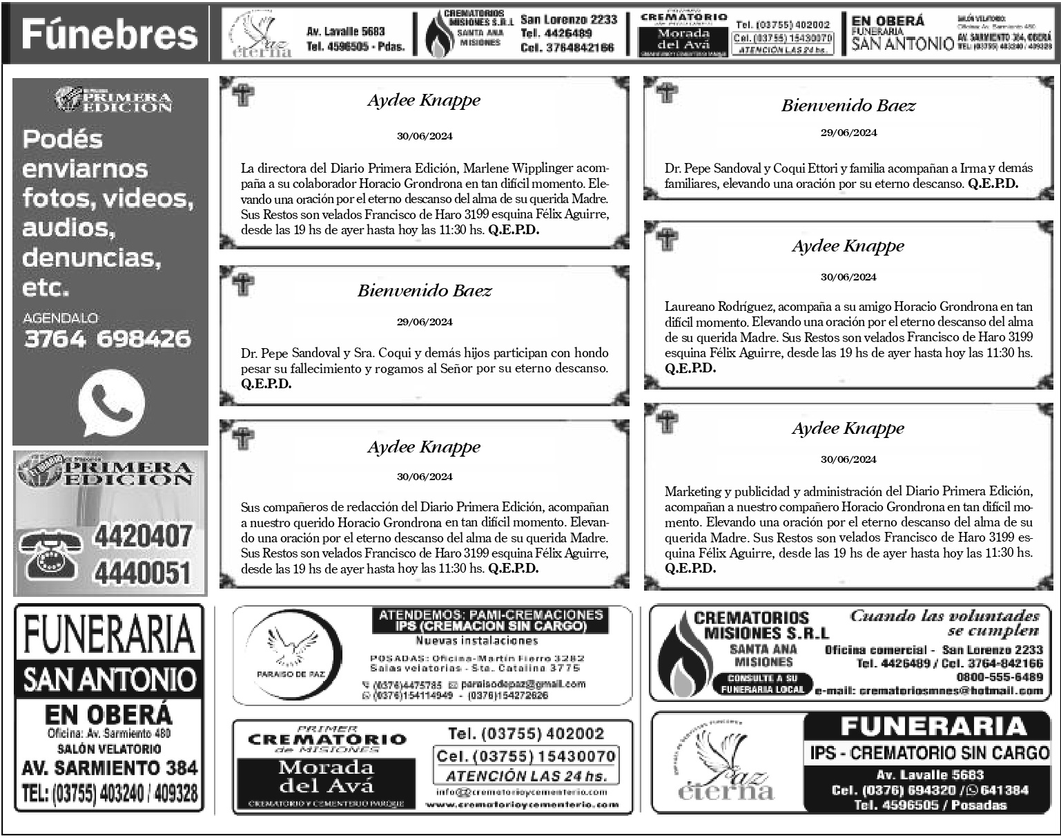 Fúnebres 01-07-2024