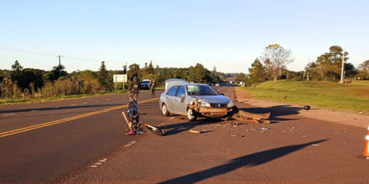 El caso ocurrió minutos antes de las 7 cuando Carlos Miguel Reincheski, quien circulaba a bordo de una motocicleta Corven 150cc., impactó contra un automóvil Renault Symbol.