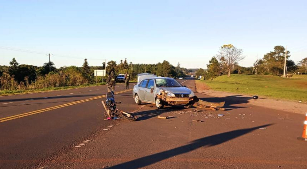 El caso ocurrió minutos antes de las 7 cuando Carlos Miguel Reincheski, quien circulaba a bordo de una motocicleta Corven 150cc., impactó contra un automóvil Renault Symbol.