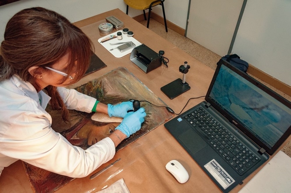 El análisis de las piezas incluye un informe en detalle de los materiales que la componen. La ficha técnica de cada obra contiene información sobre los marcos, las bases de tejido, madera u otro sistema rígido, el tipo de pigmento que se utilizó, los barnices protectores y los sistemas de sujeción con dimensiones y antigüedad. Para el análisis y mantenimiento de las obras se emplean lupas, microscopios, pinzas y otras herramientas especiales, pinturas, barnices y bases que tengan una composición química igual o similar a la original.