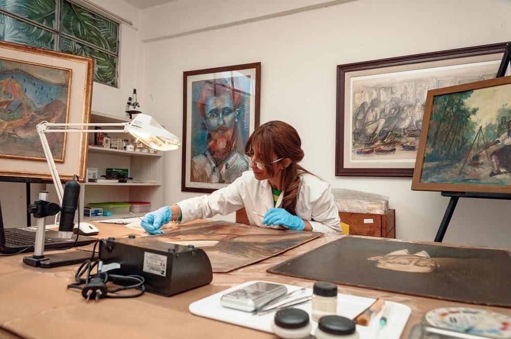 Otra de las integrantes del equipo del museo es Estela Garma, licenciada en Restauración y Museología, es la responsable de analizar las piezas y documentar de forma detallada su estado. Además, su tarea es establecer si se debe realizar una intervención en la obra, sea para mantenimiento, sea ya restauración y definir si se encuentra en condiciones de ser expuesta y por cuanto tiempo. También establece los materiales que se deben aplicar, que tienen un costo muy elevado y se importan de los grandes centros culturales del mundo.