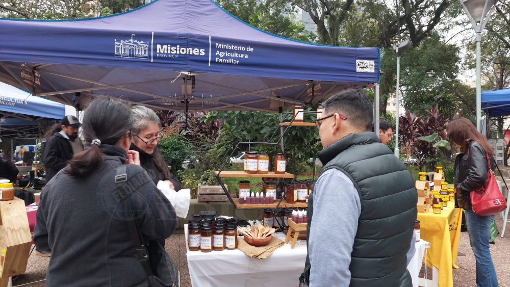 Otra de las productoras, Agustina, comentó que “somos productores de Oberá Agroecológico. Venimos del municipio de Oberá, Guaraní, General Alvear, traemos té artesanal blanco y negro además de dulces elaborados a partir de lo que cosechamos y producimos en las chacras certificadas. Tenemos dulces de mandarina, mora, que son los más tradicionales y de otros poco conocidos como el ubajay, el cocú y yacaratiá”. Agregó que “los dulces de medio kilo están 3.500 pesos, en formato un poquito más chico a 2.500”.
