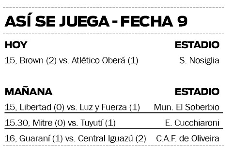 Por su parte, a las 16, será el turno de Guaraní Antonio Franco y Central Iguazú, que se medirán en el Clemente Argentino Fernández de Oliveira. A este duelo, es el Naranja el que llega con ventaja tras ganar de local 2-1. La Franja buscará torcer la serie ante su gente.