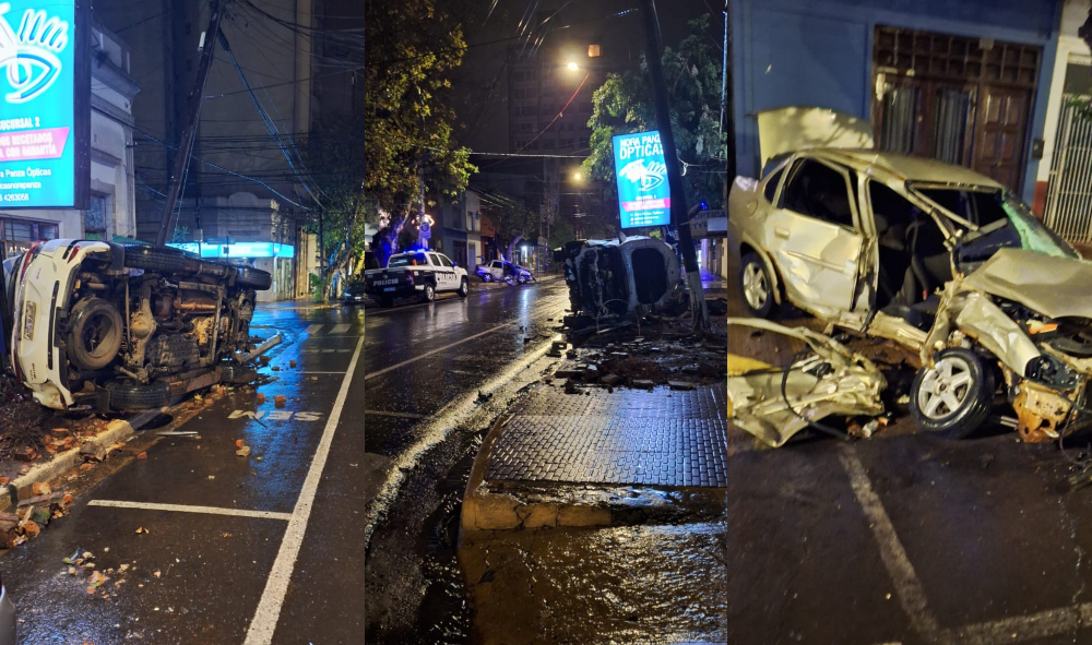 Un siniestro vial que ocurrió esta madrugada en pleno centro de Posadas, dejó como saldo importantes daños materiales y al menos una persona lesionada.