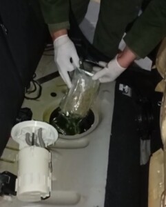 Al abrirlo, extrajeron 17 paquetes cilíndricos que contenían la sustancia vegetal compacta. Las pruebas de narcotest dieron positivo para “cannabis sativa” con un peso total de 8,963 kilogramos.