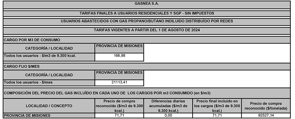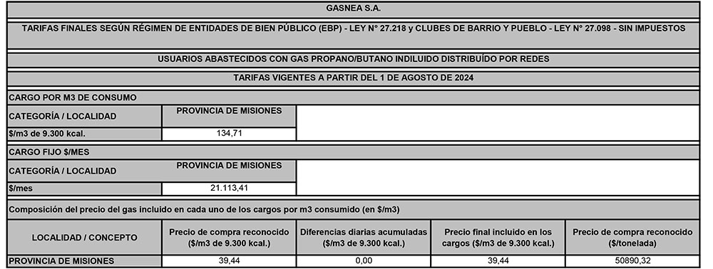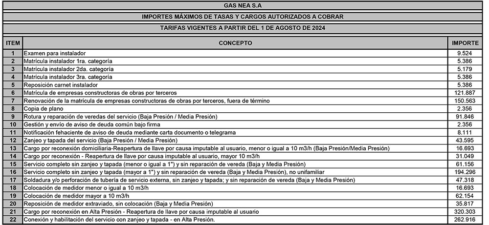 Conozca los nuevos cuadros tarifarios de Gas NEA conforme a la Resolución 421/2024
