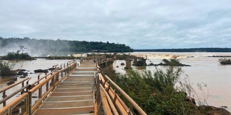 De los 99 tramos de pasarela que conforman el circuito, 79 de ellos que cedieron frente a la crecida del río Iguazú, como así también un área de la estructura del balcón.