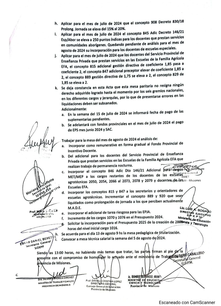 En tanto que para el mes de agosto uno de los compromisos fuertes es el blanqueo progresivo y gradual del FOPID, entre otros puntos que se detallan en el acta: