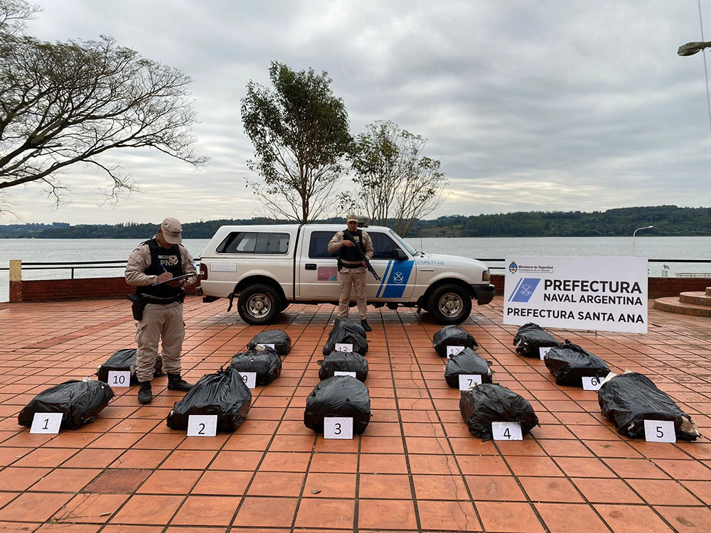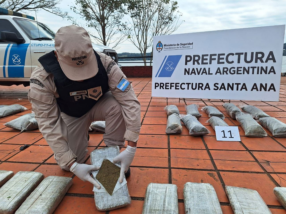 En un procedimiento realizado en Santa Ana, efectivos de la Prefectura Naval Argentina (PNA) decomisaron 170 kilos de marihuana. La carga, valuada en más de 390 millones de pesos, fue localizada cerca de la costa del río Paraná.