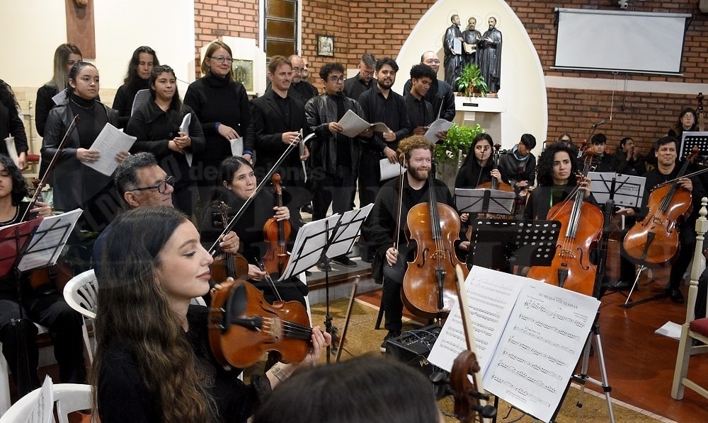 A su vez, el director musical comentó que en esta primera presentación contaron con la participación del Coro de la UnaM cuyos integrantes compartieron con los músicos parte de un repertorio jesuítico guaraní con la Misa Palatina que “se transcribió y se recuperó ese material en Chiquitos, Bolivia, y la nación guaraní como abarcaba Bolivia, Brasil, Paraguay y Argentina, decidimos que en la segunda parte, luego de la misa con el Coro interpretemos repertorio de música popular de estas regiones como para ver cómo fue el derrotero, de algún modo, de este reguero artístico que el puntapié inicial lo hicieron los jesuitas”.
