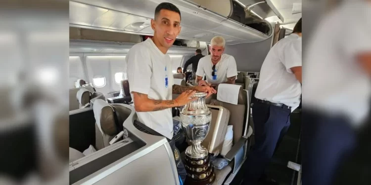 La Selección argentina llegó al país, al Aeropuerto de Ezeiza, de la mano de Ángel Di María, tras los festejos del conjunto argentino al obtener la victoria ante Colombia, el domingo pasado por 1-0 y coronarse como bicampeón de América. Sin Lionel Messi, el “Fideo” es el encargado de escoltar a los jugadores que llegaron al suelo nacional.