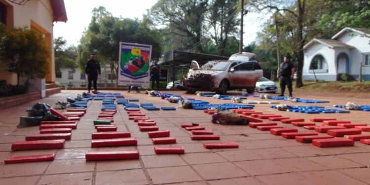 En un operativo antinarcóticos realizado este martes por la mañana, la Policía de Misiones logró evitar un presunto intercambio de drogas en Eldorado. Agentes de la División Drogas Peligrosas de la Unidad Regional III incautaron un vehículo con patente brasileña en cuyo interior había un total de 537 panes de marihuana, que suman casi 400 kilos de droga.