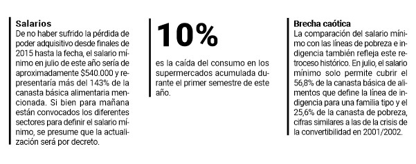 “Desde la toma de posesión del nuevo gobierno, se han llevado a cabo dos reuniones del Consejo Nacional del Empleo, la Productividad y el Salario Mínimo, Vital y Móvil, en febrero y mayo”, comienza explicando un informe de CIFRA CTA que analiza la dramática situación.