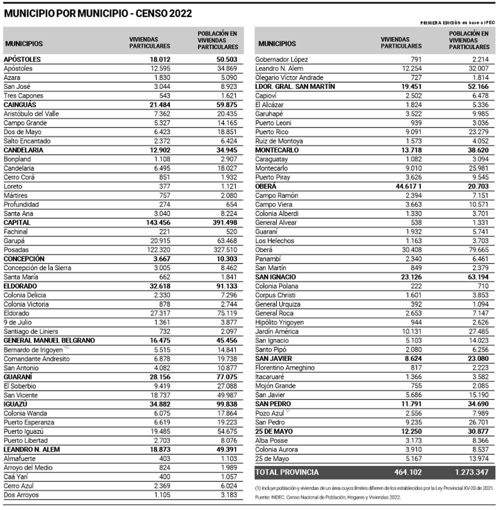 A fines de noviembre de 2023 se conocieron los datos globales por provincia respecto a la cantidad de población de las mismas. Fue cuando se supo que Misiones, con 1.273.347 habitantes, quedó como la más poblada del nordeste argentino.