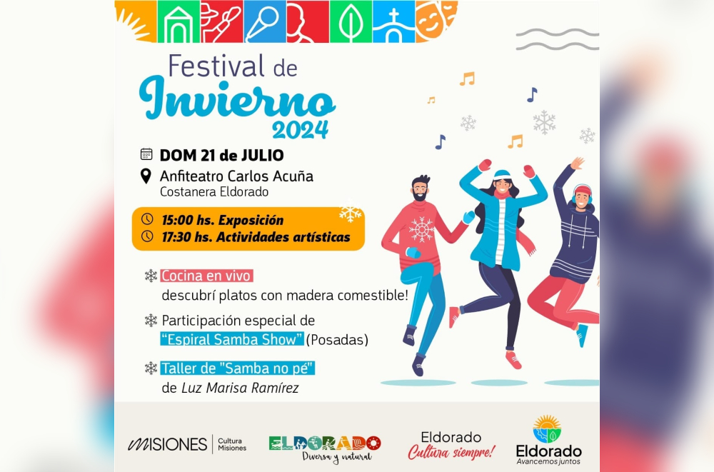 Este domingo, 21 de julio, la Dirección de Cultura y Educación y la Dirección de Turismo de la Municipalidad de Eldorado llevará adelante el Festival de Invierno en la ciudad.